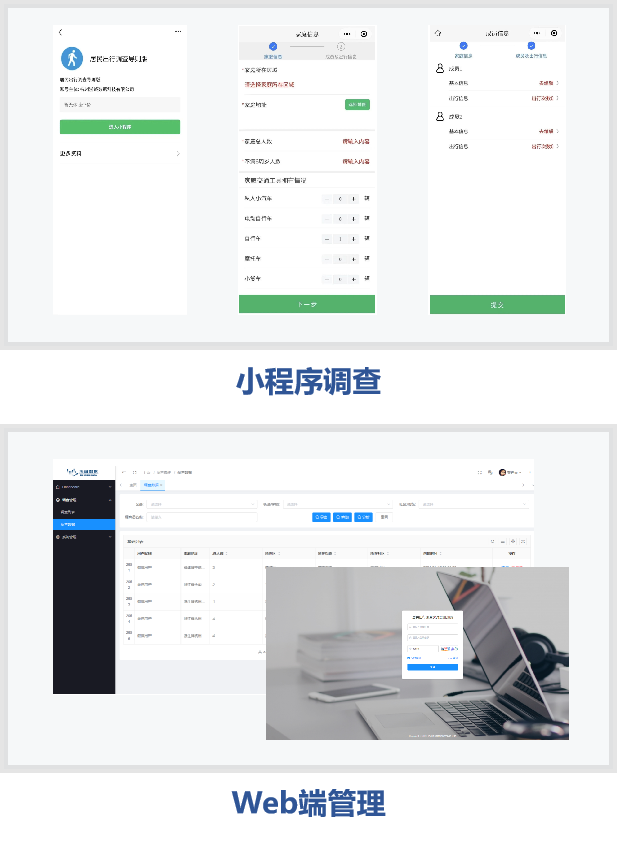 H5小程序+Web端数据监控管理 调查模式历经全国范围内 数十次 项目检验,相对传统纸质问卷入户调查: