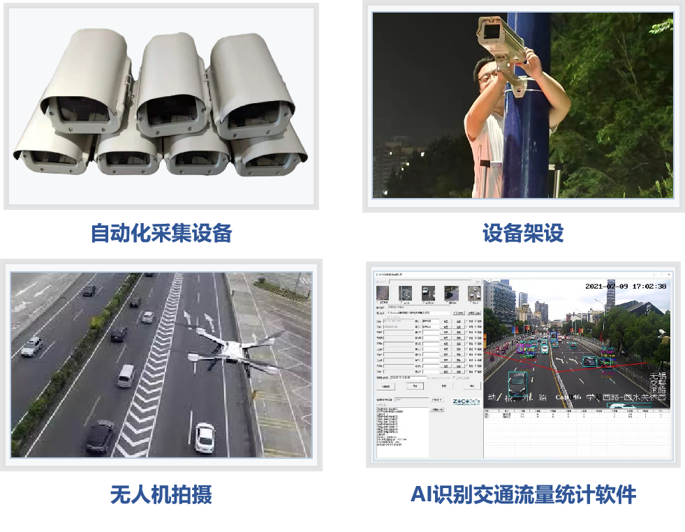 以管理部门的卡口数据为基础,首先利用视频AI识别技术进行识别,其次使用便捷的监控设备进行补充,形成数据闭环,支持路网交通组织优化,信号控制优化。