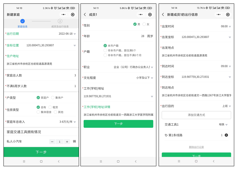 疫情环境下衍生的新型居民出行采集系统,无接触高效保质的完成出行信息的采集。为建立交通模型并预测交通需求、分析交通供需平衡以及交通供需关系的发展趋势等提供基础的数据。