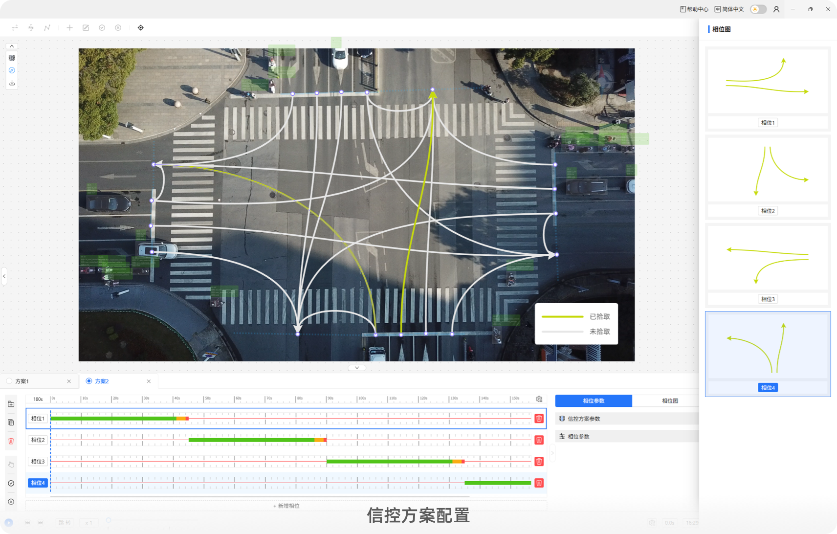可对信控方案进行有效识别,通过新建信控方案、配置视频中的信控方案参数,进而输出相位参数和相位图。